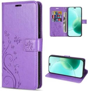 Handyhülle kompatibel mit Honor 400 Lite | Premium PU Leder Handy Hülle Wallet Case | Schutzhülle Blumen Klapphülle | Lila