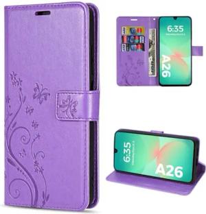 Handyhülle kompatibel mit Samsung Galaxy A26 5G | Premium PU Leder Handy Hülle Wallet Case | Schutzhülle Blumen Klapphülle | Lila