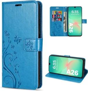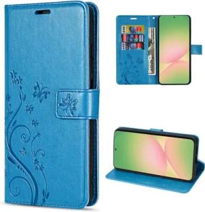 Handyhülle kompatibel mit Samsung Galaxy A56 | Premium PU Leder Handy Hülle Wallet Case | Schutzhülle Blumen Klapphülle | Blau