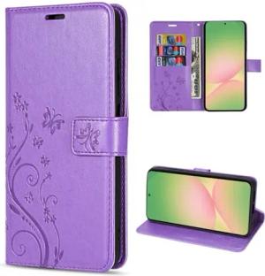Handyhülle kompatibel mit Samsung Galaxy A56 | Premium PU Leder Handy Hülle Wallet Case | Schutzhülle Blumen Klapphülle | Lila