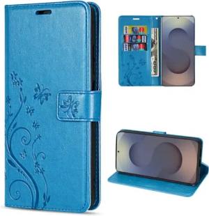 Handyhülle kompatibel mit Samsung Galaxy S25 Ultra | Premium PU Leder Handy Hülle Wallet Case | Schutzhülle Blumen Klapphülle | Blau