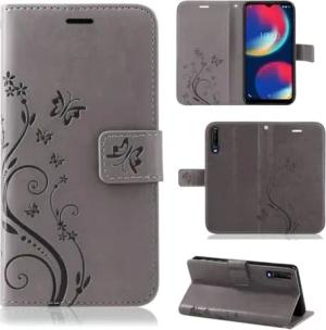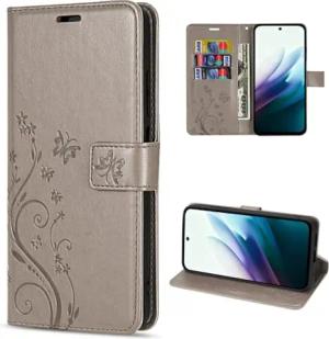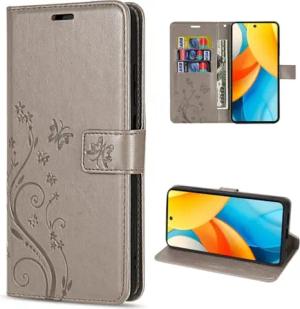 Handyhülle kompatibel mit ZTE Blade V60 Vita | Premium PU Leder Handy Hülle Wallet Case | Schutzhülle Blumen Klapphülle | Grau