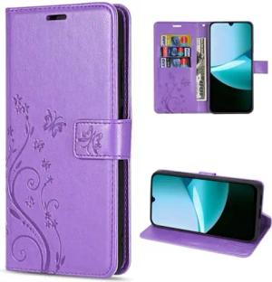Hülle Kompatibel mit ZTE Blade A35 Lite | Premium PU Leder Handyhülle Wallet Case für Blade A35 Lite | Schutzhülle Blumen Klapphülle Handyhülle | Lila