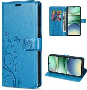 Handyhülle kompatibel mit Xiaomi Redmi A5 / Poco C71 | Premium PU Leder Handy Hülle Wallet Case | Schutzhülle Blumen Klapphülle | Blau