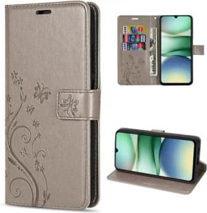 Handyhülle kompatibel mit Xiaomi Redmi A5 / Poco C71 | Premium PU Leder Handy Hülle Wallet Case | Schutzhülle Blumen Klapphülle | Grau