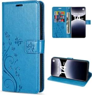 Handyhülle kompatibel mit Xiaomi Redmi Note 14 Pro 5G | Premium PU Leder Handy Hülle Wallet Case | Schutzhülle Blumen Klapphülle | Blau