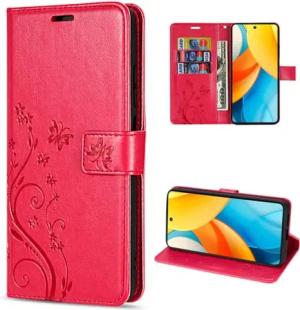 Handyhülle kompatibel mit ZTE Blade V60 Vita | Premium PU Leder Handy Hülle Wallet Case | Schutzhülle Blumen Klapphülle | Rot
