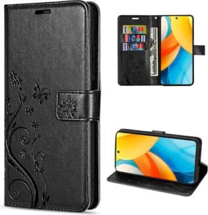 Handyhülle kompatibel mit ZTE Blade V60 Vita | Premium PU Leder Handy Hülle Wallet Case | Schutzhülle Blumen Klapphülle | Schwarz
