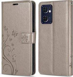 Hülle Kompatibel mit Oppo Find X5 Lite | Premium PU Leder Handyhülle Wallet Case für Find X5 Lite | Schutzhülle Blumen Klapphülle Handyhülle | Grau