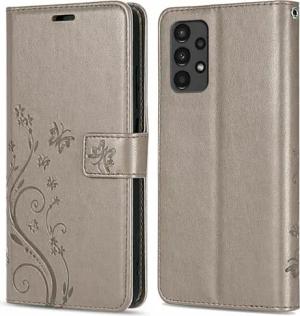 Hülle Kompatibel mit Samsung Galaxy A13 4G | Premium PU Leder Handyhülle Wallet Case für Galaxy A13 4G | Schutzhülle Blumen Klapphülle Handyhülle | Grau