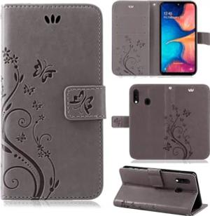 Hülle Kompatibel mit Wiko View 4 / View 4 Lite | Premium PU Leder Handyhülle Wallet Case für View 4 / View 4 Lite | Schutzhülle Blumen Klapphülle Handyhülle | Grau