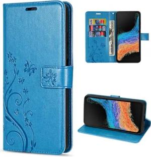 Hülle Kompatibel mit Samsung Galaxy Xcover 6 Pro | Premium PU Leder Handyhülle Wallet Case für Galaxy Xcover 6 Pro | Schutzhülle Blumen Klapphülle Handyhülle | Blau