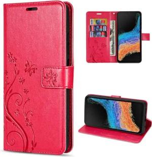 Hülle Kompatibel mit Samsung Galaxy Xcover 6 Pro | Premium PU Leder Handyhülle Wallet Case für Galaxy Xcover 6 Pro | Schutzhülle Blumen Klapphülle Handyhülle | Rot