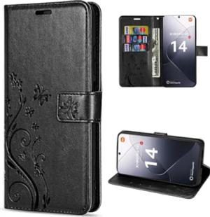 Hülle Kompatibel mit Xiaomi 14 | Premium PU Leder Handyhülle Wallet Case für 14 | Schutzhülle Blumen Klapphülle Handyhülle | Schwarz