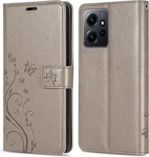 Hülle Kompatibel mit Xiaomi Redmi Note 12 5G | Premium PU Leder Handyhülle Wallet Case für Redmi Note 12 5G | Schutzhülle Blumen Klapphülle Handyhülle | Grau