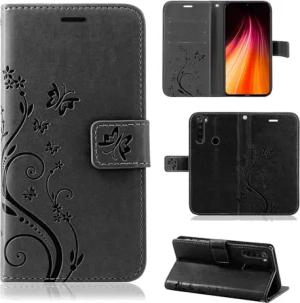 Hülle Kompatibel mit Xiaomi Redmi Note 8 (2021) | Premium PU Leder Handyhülle Wallet Case für Redmi Note 8 (2021) | Schutzhülle Blumen Klapphülle Handyhülle | Schwarz