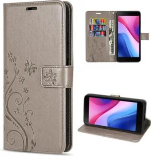 Hülle Kompatibel mit Wiko View 3 Lite | Premium PU Leder Handyhülle Wallet Case | Schutzhülle Blumen Klapphülle Handyhülle | Grau