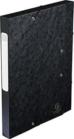 Ref. 540705E – Karton mit 10 Ordnern mit Klammerrücken – mit Gummibändern – bedruckter Deckel aus Glanzkarton und schwarzer Innenseite aus recycelter Karte – 7 Fächer – 24,5 x 32 cm – A4