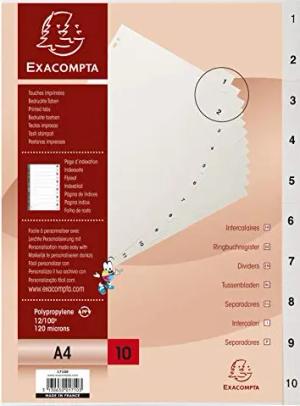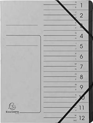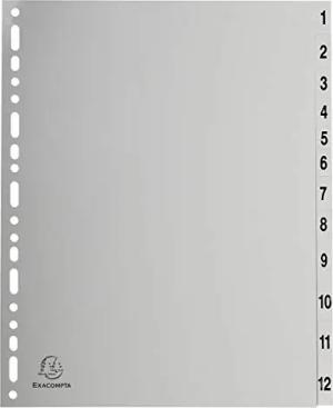 2912E 10er Pack Kunststoff-Register 1-12 für DIN A4 MAXI aus recyceltem Kunststoff 12-teilig volle Höhe 24 x 29,7 cm grau mit bedruckten Taben Universallochung Blauer Engel Trennblätter