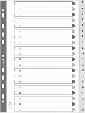 1721E Kunststoff-Register 1-20 für DIN A4 aus recyceltem Kunststoff 20-teilig volle Höhe 21 x 29,7 cm weiß mit bedruckten Taben Universallochung Blauer Engel Trennblätter Trennstreifen