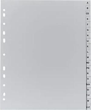 1920B Recycling Kunststoff-Register Überbreit 20 Blatt mit bedruckten Taben A-Z für DIN A4 volle Höhe Plastikregister für die ideale Ablage von Prospekthüllen Blauer Engel grau