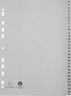 1931E Kunststoff-Register 1-31 für DIN A4 aus recyceltem Kunststoff 31-teilig volle Höhe 21 x 29,7 cm grau mit bedruckten Taben Universallochung Blauer Engel Trennblätter Trennstreifen