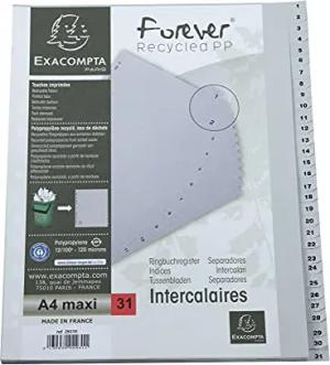 2931E Kunststoff-Register 1-31 für DIN A4 MAXI aus recyceltem Kunststoff 31-teilig volle Höhe 24 x 29,7 cm grau mit bedruckten Taben Universallochung Blauer Engel Trennblätter Trennstreifen