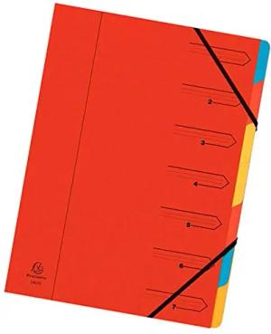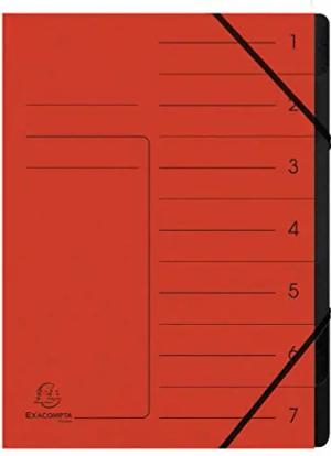 540705E Premium Ordnungsmappe geheftet. Aus extra starkem Colorspan-Karton DIN A4 7 schwarze Fächer und 2 Gummizüge mit Organisationsdruck Ringmappe Register-Mappe rot