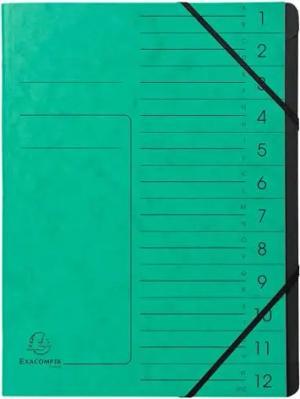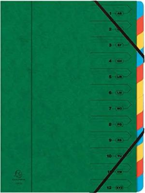 54123E Premium Ordnungsmappe geheftet. Aus extra starkem Colorspan-Karton DIN A4 12 vollfarbige bunte Fächer und 2 Gummizüge mit Organisationsdruck Ringmappe Register-Mappe grün
