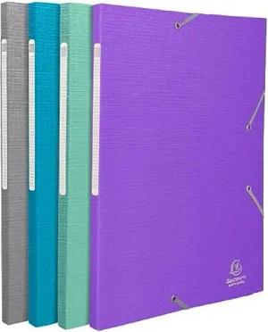 55650E 4er Pack Sammelmappe TEKSTO für DIN A4 mit 2 Gummizügen. Aus gefärbten, gerillten Karton mit Textileffekt,wasserabweisend durch pflanzliche Ölbeschichtung farbig sortiert