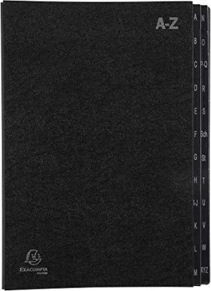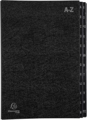 Ref. 57024E – Karton mit 8 Ordnern – fester Einband – innen aus recycelter Karte – laminierte Register von A bis Z – 24 Fächer – Maße 24 x 34 cm – Schwarz