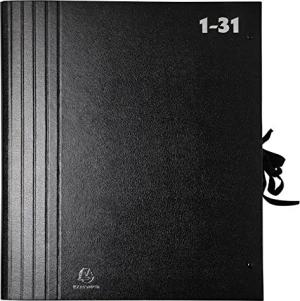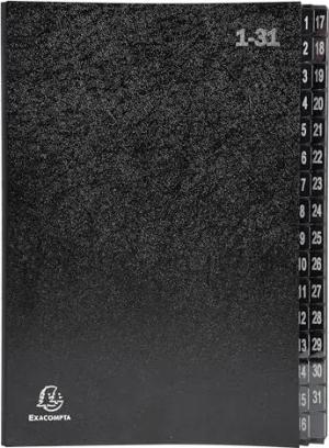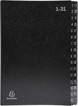 Ref. 57032E - Karton mit 6 Ordnern, fester Einband, innen aus recycelter Karte, digitale laminierte Registerkarten mit 1 bis 31-32 Fächern, Maße: 25 x 33 cm, für A4, Schwarz