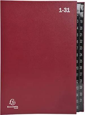Ref. 57035E - Karton mit 6 Ordnern - fester Einband - Innenseite aus schwarzer Karte - digitale laminierte Register mit 1 bis 31-32 Fächern - Maße: 25 x 33 cm - für A4 - Rot