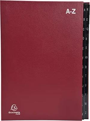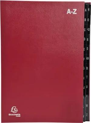 Ref. 57225E Ordnungsmappen mit 8 Ordnern, fester Einband, innen aus recycelter Karte, laminierte Registerkarten von A bis Z, 24 Fächer, Maße: 24 x 34 cm, rot
