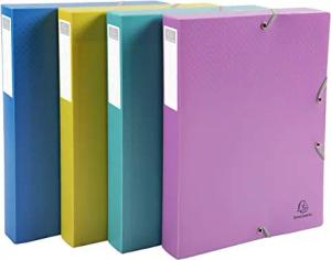 59190E 4er Pack Recycling Kunststoff-Archivbox Forever Young 4cm Rückenbreite aus blickdichtem Polypropylen und 2 Gummizügen DIN A4 Blauer Engel farbig sortiert