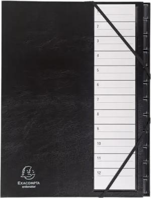 625665E Premium Ordnungsmappe Ordonator. Mit festem Einband für DIN A4 und 12 Fächern 1-12 mit dehbarem Rücken, 2 Gummizügen, Etikettenhalter, Kartenreiter mit Lupeneffekt schwarz