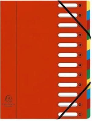 541205E Premium Ordnungsmappe geheftet. Aus extra starkem Colorspan-Karton DIN A4 12 schwarze Fächer und 2 Gummizüge mit Organisationsdruck Ringmappe Register-Mappe rot