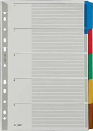 Register für A4, Deckblatt und 5 Trennblätter, Lochrand und bunte Taben folienverstärkt (Mylar), Grau, Karton, 43200000