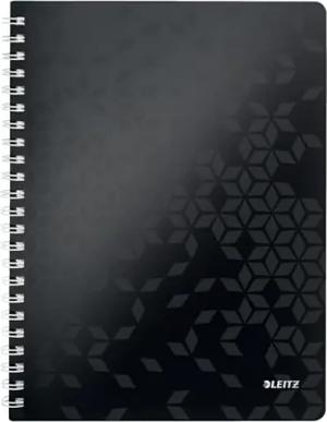 WOW Collegeblock A4 kariert, 160 Seiten, 80 Blatt FSC-zertifiziertes Papier 80 g/m², Doppelspiralbindung, PP-Einband, Notizbuch mit Sichthülle und Lineal, Für Büro oder Schule, Schwarz, 46380095