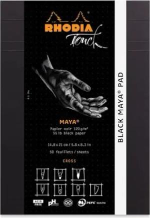 Rhodia 116113C - Zeichenblock Black Maya DIN A4+, 50 Blatt schwarz, Maya Papier 120g, cross, 1 Stück, Schwarz
