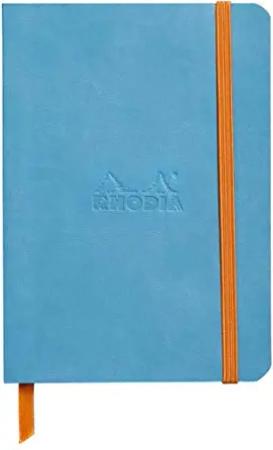 117357C Rhodiarama Notizheft (mit weichem Umschlag, dot grid, 72 Blatt, 90 g elfenbeinfarbenes Papier, DIN A6, 10,5 x 14,8 cm, Lesezeichen, Innentasche) 1 Stück türkisblau