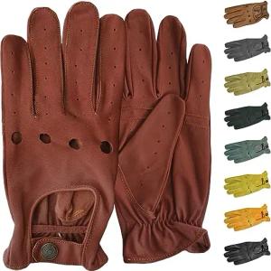 Unisex Driving Autofahrer-Handschuhe Lederhandschuhe (Dunkelbraun, 9=L)