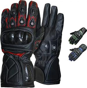 Motorradhandschuhe Motorrad Biker Handschuhe Lederhandschuhe, Größe:8=M, Farbe:Rot