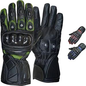 Motorradhandschuhe Motorrad Biker Handschuhe Lederhandschuhe, Größe:9=L, Farbe:Grün