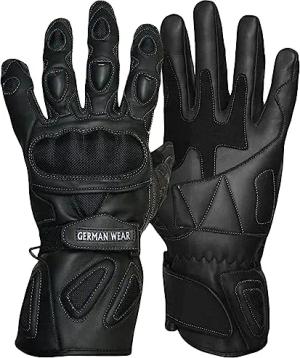 Motorradhandschuhe Motorrad Biker Handschuhe Lederhandschuhe Schwarz, Size:8=M