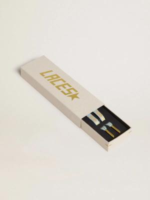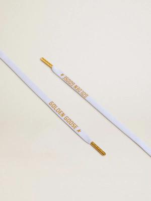 Weiße Baumwollschnürsenkel Mit Goldfarbenem Kontrastlogo, Mann, Größe: 110
