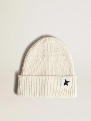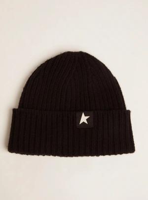 Schwarze Wollmütze Mit Weißem Stern, Mann, Größe: L