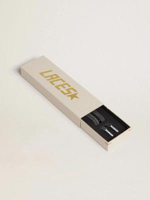 Eisgraue Schnürsenkel Mit Kontrastierenden Schwarzen Laces-schriftzügen, Mann, Größe: 110