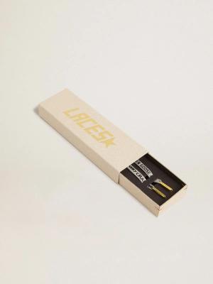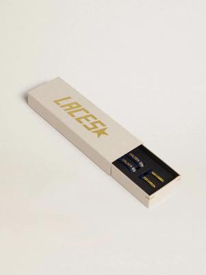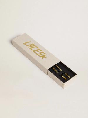 Schwarze Baumwollschnürsenkel Mit Goldfarbenem Kontrastlogo, Mann, Größe: 110