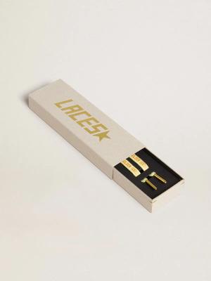 Gelbe Baumwollschnürsenkel Mit Goldfarbenem Kontrastlogo, Mann, Größe: 110